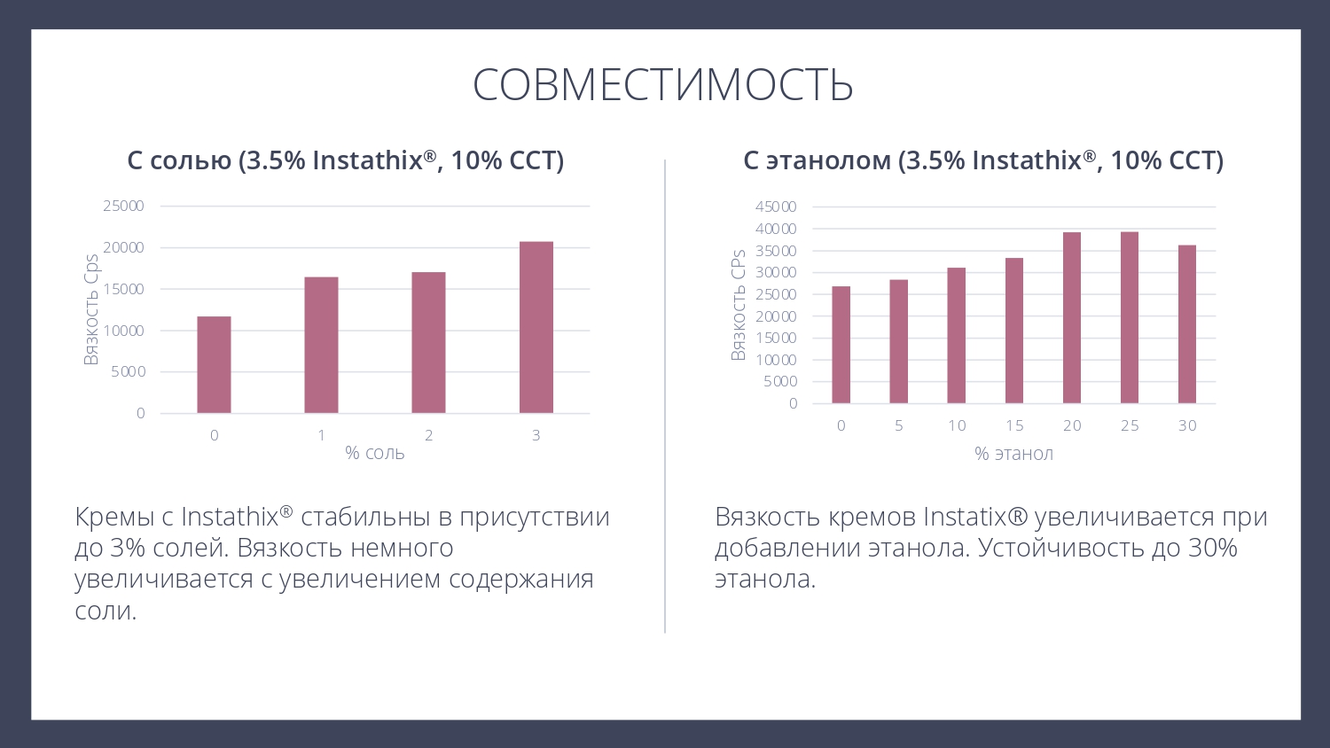 Instathix® представляет собой концентрированную порошковую смесь натуральных эмульгаторов, стабилизаторов и модификаторов текстуры, позволяющую легко получать стабильные эмульсий типа "масло-в-геле". С ним можно создавать как жидкие сыворотки с шелковистой гладкой текстурой, так и более насыщенные и густые кремы и баттеры. Кроме того, этот ингредиент можно использовать для решения проблем, связанных с повышением вязкости или улучшением стабильности и текстуры уже готовых рецептур.